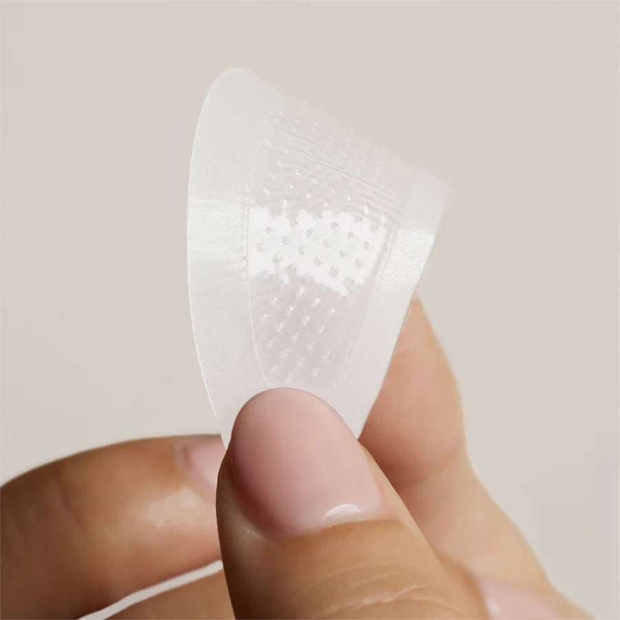 1️⃣ Vorbereiten: Gesicht reinigen und trocknen. Pads entnehmen und unter den Augen platzieren (Nadelseite zur Haut).